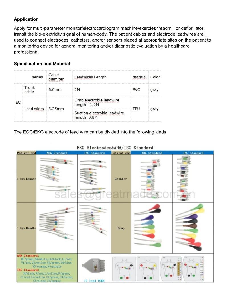 10-luaidhe ECW leadwire, Snap, AHA comhoiriúnach le HP / Philips