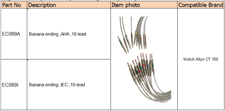 Clibeanna Te: allyn welch comaptible CT 100 ecg leadwires, 10-luaidhe, nascadh cábla ekg, an tSín, monaróirí, saincheaptha, mórchóir, lascaine a cheannach, praghas íseal, ar ardchaighdeán