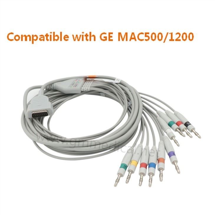 Cábla EKG aonphíosa agus Leadwires 10-Luaidhe Comhoiriúnach le GE MAC500 / 1200, AHA, Banana
