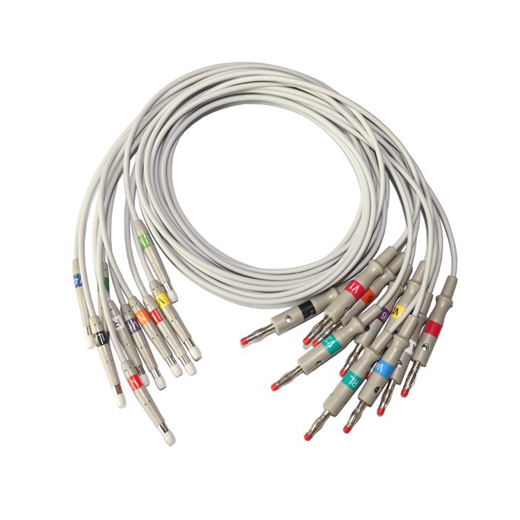 Déantar an fhoireann luaidhe EKG seo a innealtóireacht go sonrach le haghaidh meaisíní electrocardiograph Welch Allyn CP100 agus CP200. Agus é comhdhéanta de 10 dtoradh le plocóidí banana (cloí le caighdeáin IEC), cinntíonn sé tarchur beacht comharthaí leictreacha cairdiacha. Tá na cáblaí, atá déanta as TPU ardchaighdeáin leighis, marthanach, solúbtha agus frithsheasmhach in aghaidh caitheamh agus craiceann. Dath-códaithe de réir caighdeáin idirnáisiúnta ECG, cumasaíonn na treoracha agus na nascóirí naisc thapa agus saor ó earráidí ón bhfoireann leighis. An-oiriúnach d'ospidéil, clinicí agus áiseanna leighis eile, tacaíonn an tacar seo le scrúduithe leictrea-chardagrafacha cruinne, scagthástáil galar cairdiach, agus monatóireacht ar riocht croí othair, le tacaíocht ó sheirbhís iontaofa tar éis díolacháin.
