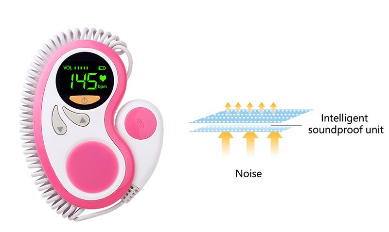 Taispeántas faoi stiúir-backlit, tuiscint níos iomasach ar ráta croí an fhéatais, toirt inchoigeartaithe, ag éisteacht le buille croí an linbh