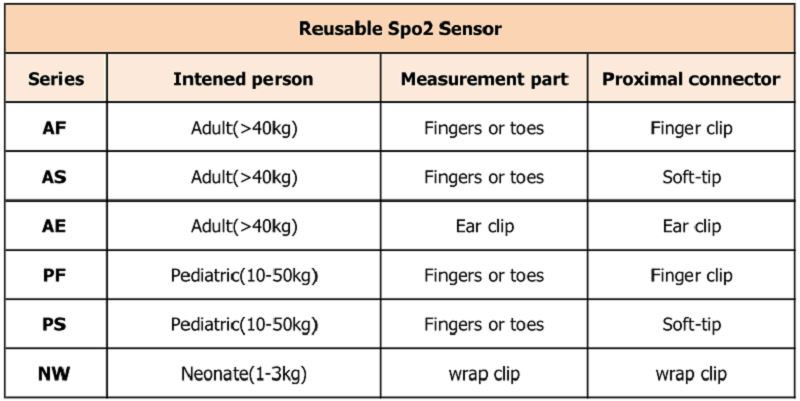 (Sraithuimhir AF&AS) Tá an braiteoir spo2 ath-inúsáidte mórdhéanta ceangailte leis an ocsaiméadar bíog comhoiriúnach le haghaidh monatóireachta neamh-ionsaigh leanúnach ar sháithiúchán feidhme ocsaigine de haemaglóibin artaireach (SpO2) agus ráta cuisle (PR) d'othair a bhfuil níos mó ná 40kg acu.